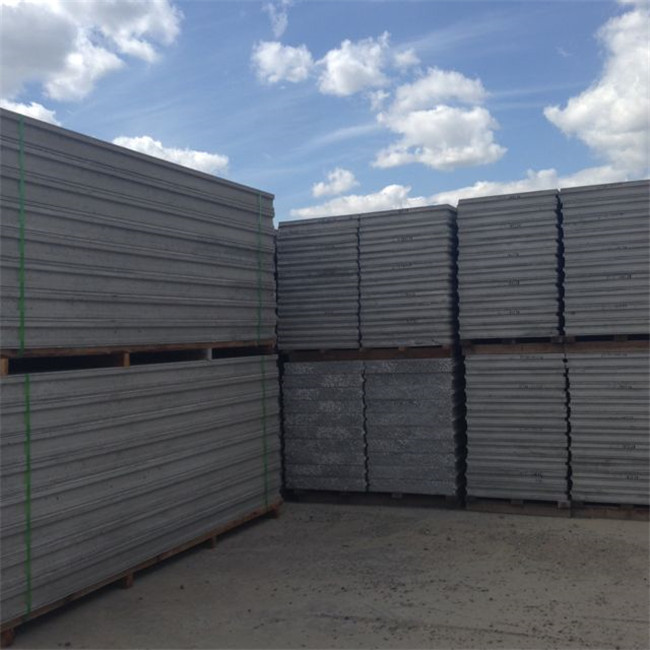 關(guān)鍵點(diǎn)2、輕質(zhì)墻板要正確碼放。不管什么樣的墻板產(chǎn)品,在脫模后往往處于漿料的初凝狀態(tài),此時(shí)板體具有了一定的強(qiáng)度,但距離達(dá)到使用強(qiáng)度還有不少差距,因此一定要將墻板碼放在平整的地方,否則板體極易出現(xiàn)變形,影響平整度。碼放一般采取碼垛的方式,根據(jù)不同產(chǎn)品,一般每垛可堆至1-3米高。為今后出貨方便,還要在垛的底部事先放置托盤(pán),要確保托盤(pán)本身的質(zhì)量和放置的平整度,避免受力不均而出現(xiàn)輕質(zhì)墻板的彎曲。